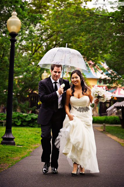 After the ceremony, the bridal party dashed off for some fun photos at Glen Echo Park despite the on and off drizzle!